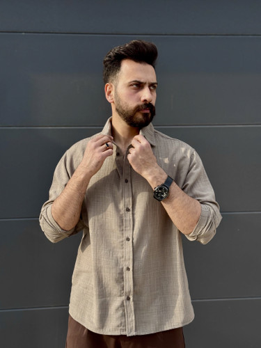 پیراهن لنین پارچه خط دار مردانه هنگرهی