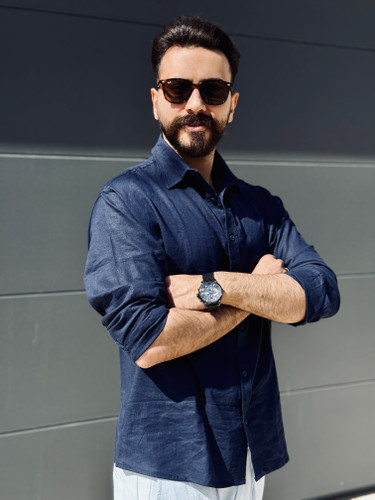 پیراهن لنین اکسپورت آستین بلند دکامود