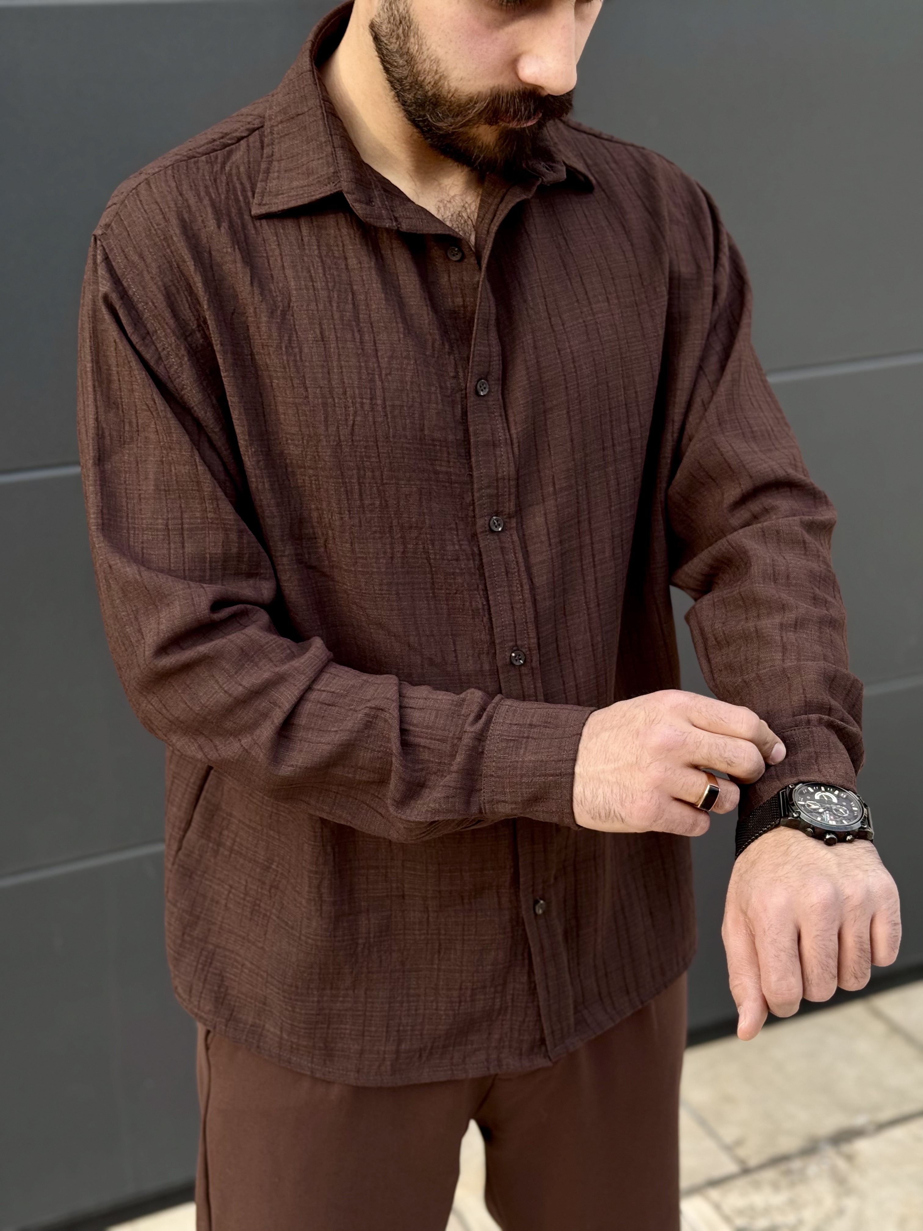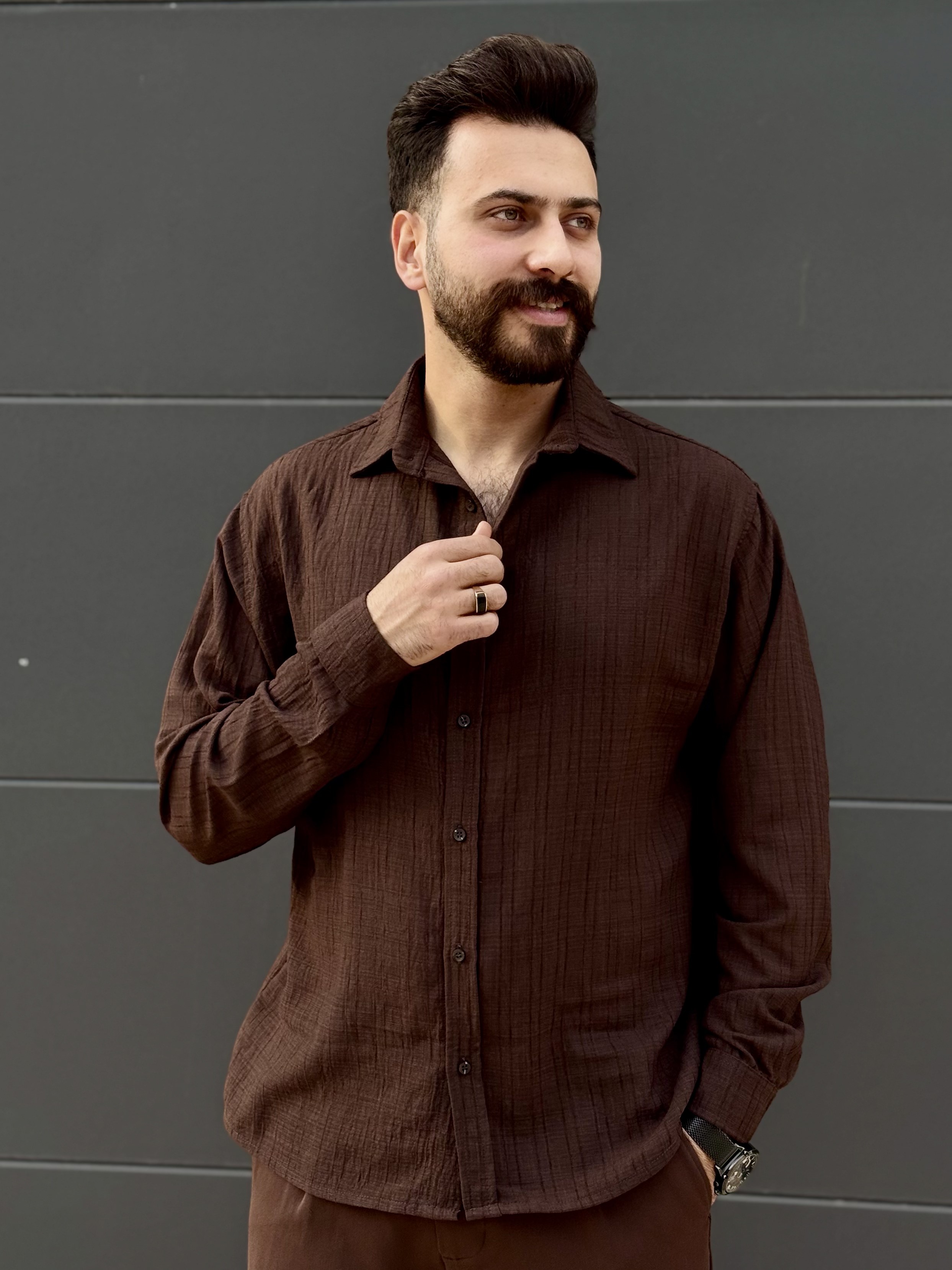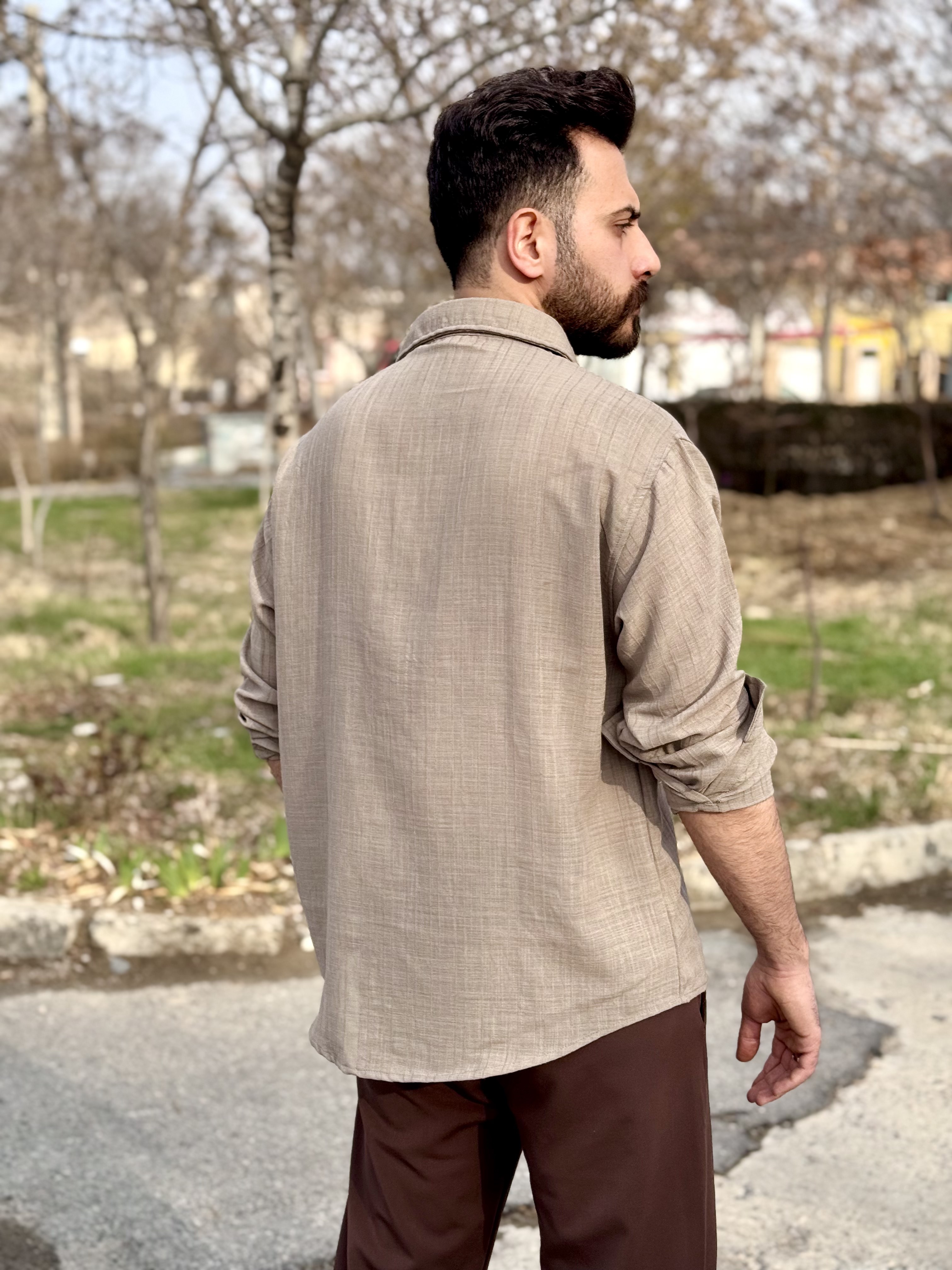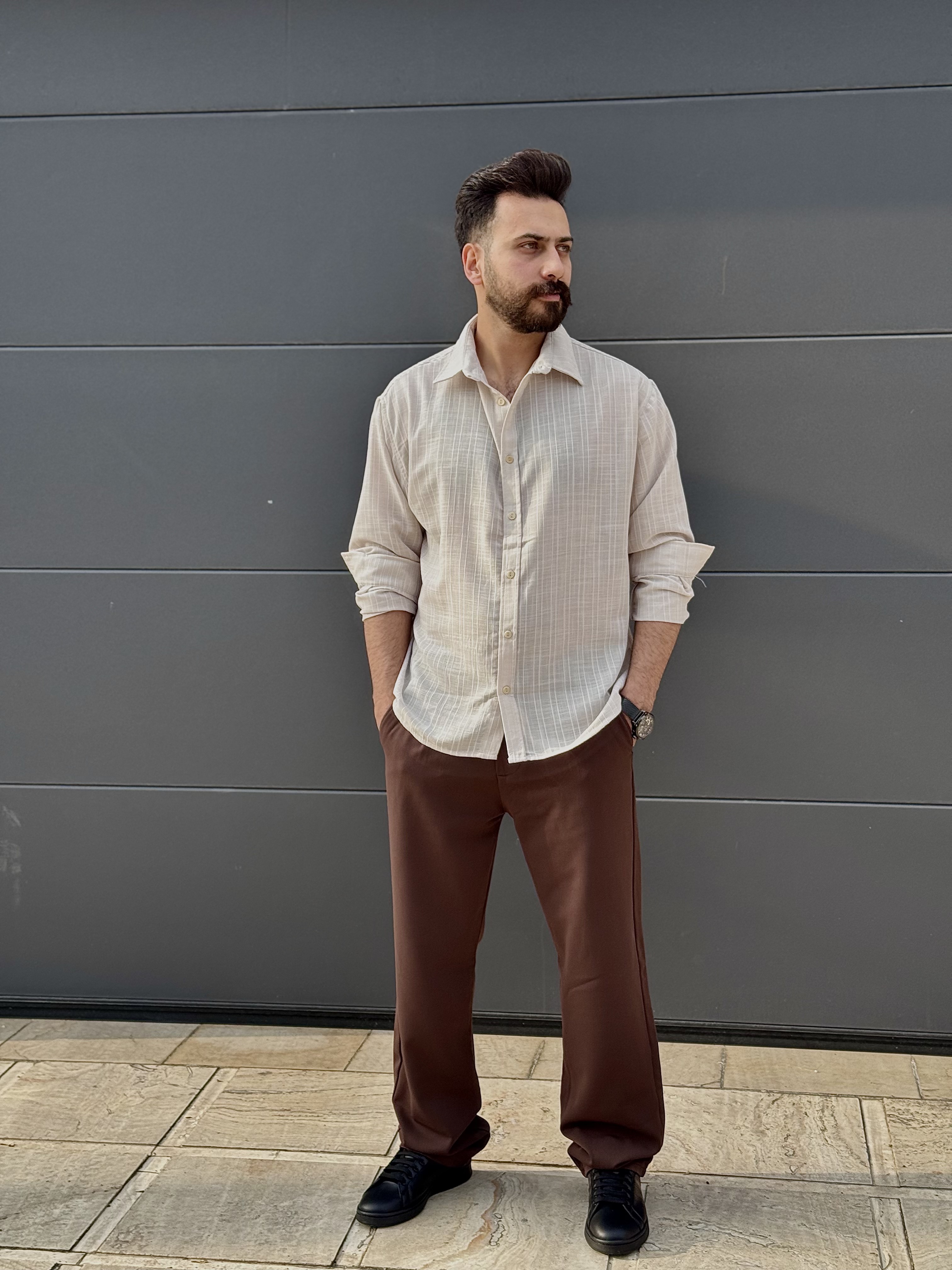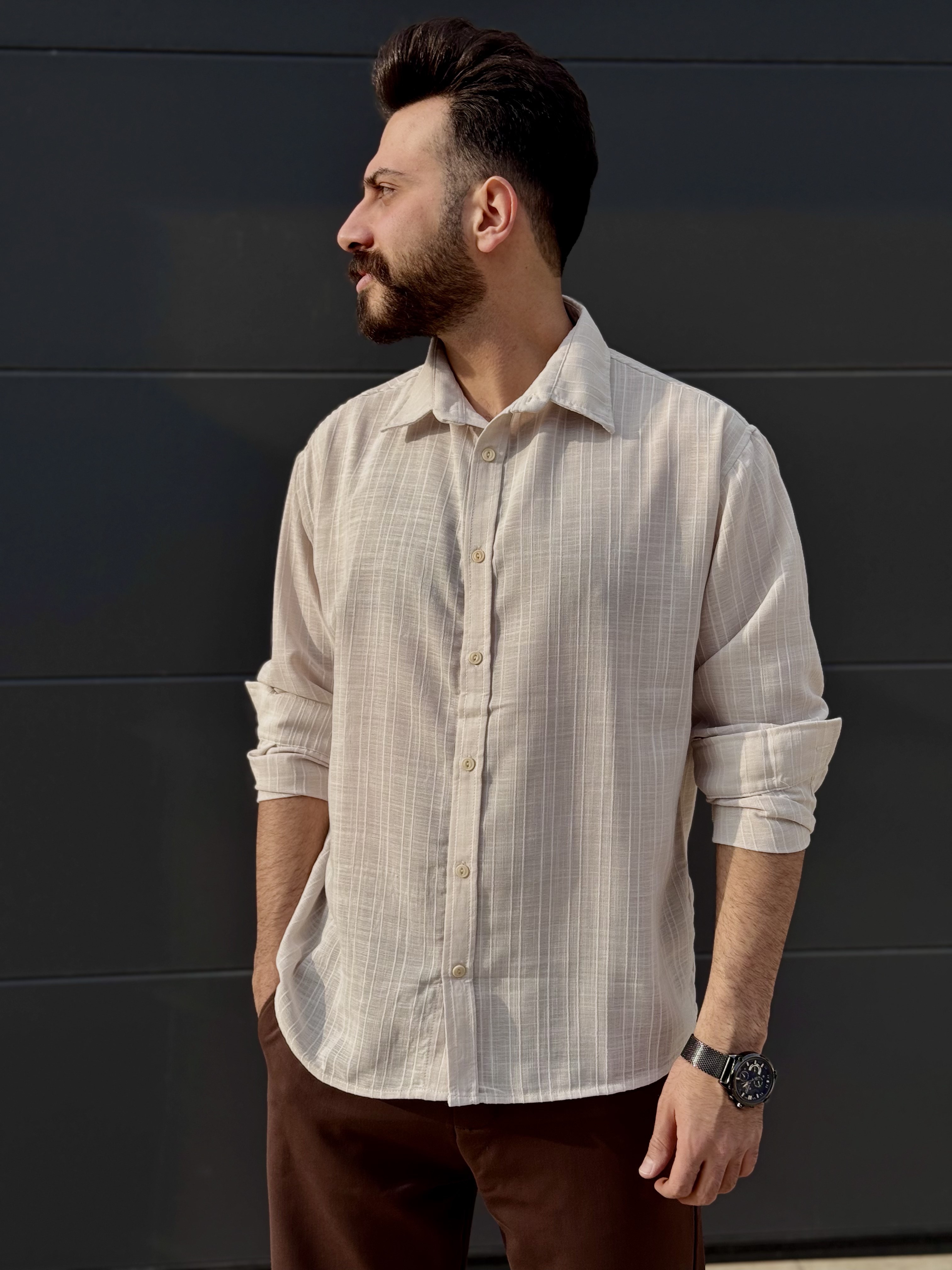 پیراهن لنین پارچه خط دار مردانه هنگرهی